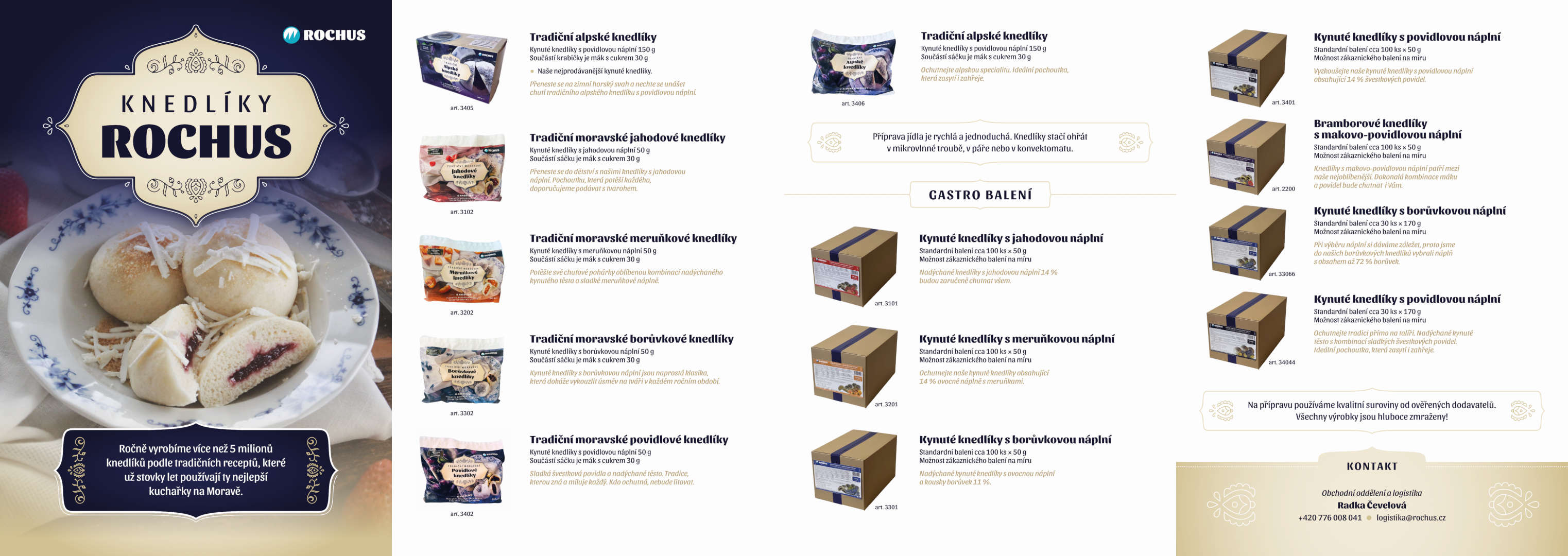 Naše společnost je expertem na knedlíky. V našem výrobním závodě v Kunovicích připravujeme vynikající knedlíky pod značkou ROCHUS. Vyrábíme je již více než 30 let podle tradičních receptur, které stovky let používají ty nejlepší kuchařky na Moravě